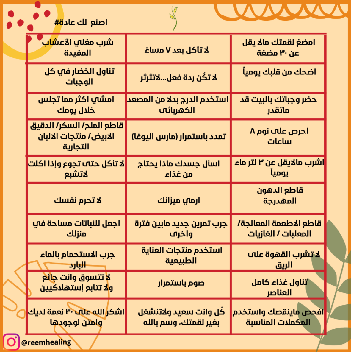 لذلك احببت أن أساعدكم بكذا توجيه بسيط وعادات ستصنع فرق عظيم في حياتكم الصحية والنفسية لمن طبق والتزم صح..